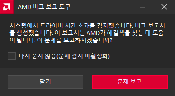 AMD 라데온 드라이버 시간 초과 감지 해결방법